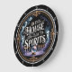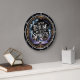 This round wall clock features a mystical and spooky design with a crystal ball and lit candles at its center. Ghostly spirits with swirling trails emerge around the edges, framed by ornate gold accents. The text "IN THIS HOUSE WE TALK TO SPIRITS" is prominently displayed, making it a perfect addition for those who embrace the supernatural.