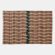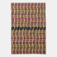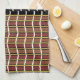Inception kitchen towel. Inception is an abstract design created by Anna M. Asbury and consists of red and orange blocks with white and yellow lines running vertically and horizontally on a black background.