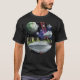 My 11 yo wore adult XL (5’7” 165#). The 8yo is small framed. She wore adult small and tied it in the back. Grandma wore adult large with long sleeve shirt underneath. Tall girl adult medium. Dark haired male adult large. Good quality dark Heather gray, Gildan brand shirt. -it was next up from basic choice and cost about $20 per shirt. Not too thick or thin. Washed and dried well, no major shrinkage. Not see-through. Can wear a bra under it fine. Screen print is just as shown and well done, front and back.