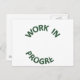 This funny design is literally a work in progress. The unfinished image features green text that says: Work in Progre ...