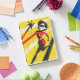I was super excited when I got my cover in. It is attached by a magnet across the edge. I don’t think it will be very protective but it is very cute. I’m going to keep my iPad in a sleeve and use this face cover while I have it out. It folds to create a tilt for better viewing and to keep the iPad at a slight angle for typing. The colors are bright and it is fun. I’ve really enjoyed it. The personalization looks like amazing. It is the same color as the picture and is the same brightness. Well done! Very nice.