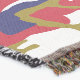 A quality printed throw has its advantages. This is a much finer weave throw than its loopier cousins, and though lighter, it is worth the investment for custom room accessorizing. The back is much prettier than the typical brown, and the fringe on the long sides very vivid, the selvage nicely done. Before photographing, I washed the throw in cold water, delicate, with a thicker woven throw the same size. On tumble dry low, this throw was dry in half the time as the other. This is a very practical quality if you use throws for furniture covers or to wrap up in frequently. The sleekness of the fabric makes it a great layer for accenting or protecting without the feeling of sitting on too much stuff. Perfect for napping or when you feel a light chill coming on. The color printing is beautiful and on this fabric, matched the design and color of my Photoshop image. This is an advantage for blending room fabrics and colors. The fringe on the short sides prints the colors from the design image and therefore varies from the side fringe. I streaked a white fractal line through the plaid pattern to give the illusion of weaving. This printed as crisp as an illusory thread, and put some white in the short side fringe, showing another advantage of print vs loomed- for artistic purposes, line lines, detail, and color integrity can be planned and preserved. My loomed throws have color limitations and more of a needlepoint texture. Print throws reproduce an exact image. The throw felt a little stiff straight out of the package, but this went away in the first delicate wash. Of course I searched the wash water for ink or bleeding and there was none.
