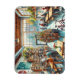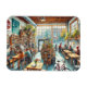 The watercolor painting beautifully illustrates an independent, community-focused café in Portland, Oregon. The interior of the café exudes a cozy, inviting atmosphere with reclaimed wood furniture and eclectic decor, including local art and communal tables. The walls are richly adorned with colorful murals and shelves brimming with books and plants, showcasing the community's dedication to sustainability and local culture. Large windows allow natural light to illuminate the bustling activity inside, where a diverse mix of patrons, from artists to entrepreneurs, engage in lively conversations or concentrate on their laptops. The exterior scene captures a vibrant street view with bicycles and local flyers, perfectly encapsulating the spirit of Portland's vibrant, community-oriented lifestyle.