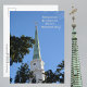 This photographic postcard features the Independent Presbyterian Church steeple in historic downtown Savannah, Georgia. One of the many historic churches within the city.