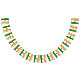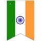 The Indian flag is a charged horizontal tricolour with in the middle an emblem. The used colors in the flag are blue, orange, white, green. The proportion of the Indian flag is 2:3. The Flag of India was adopted in 1947.