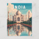 India retro vector travel design. From the Taj Mahal to the Himalayas, bustling cities to tranquil villages, India offers an unforgettable journey for every kind of traveler.