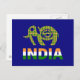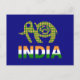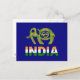 A stylized, vector picture of a pregnant elephant. The word India is displayed in the colours of the stripes from the indian flag. The elephant is painted in these colours also. The national flag of India, orange / India saffron (Kesari), India green, white, and navy blue