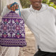 Introducing our Indian Floral Cross Stitch Bag, featuring a captivating purple background with an ethnic oriental pattern. This bag combines traditional Indian floral cross stitch with a modern Aztec-style abstract vector illustration. A fusion of cultural heritage and contemporary design, perfect for any occasion.