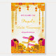 Make your Haldi Ceremony or Maiyan Ceremony memorable and special with this traditional colourful in yellow flower and indian garland. You can personalise according to your function and needs and create a memorable experience for your dear ones by placing this vibrant colourful haldi welcome board next to the entrance. This templates will add a touch of elegance and charm to your special day.