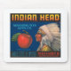 Vintage fruit crate label for Washington Apples featuring an American Indian illustrated in feather head-dress.