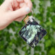 The key chain is made of metal and really sturdy. The flower design is really cheerful. The logo and colors are clear and crisp!