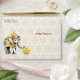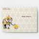Indian wedding ornate elephant with yellow flowers gold mandala pattern background personalized envelope, pretty decorated Indian elephant yellow flowers gold bells modern watercolor envelopes.