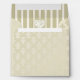 Champagne colored silk damask background, ornamental borders and gem hearts make your wedding invitation special.