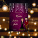 Indian wedding reception welcome sign board template cute bridal couple, dark blue purple burgundy background with fairy lights and Indian bridal couple reception editable template welcome sign personalized reception entrance decor