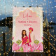 Indian wedding with a cute bridal couple, pink lotus flowers, pink lengha dresses Indian bridal couple welcome sign.