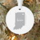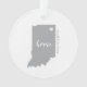A simple ornament with an outline of the state of Indiana and beautiful lettering for the word "home" placed in the center. Personalize this ornament by inserting your hometown & customize further by placing the ♥ near your hometown on the Indiana state image. These are great gifts, keepsakes, and perfect for collections!