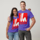My 11 yo wore adult XL (5’7” 165#). The 8yo is small framed. She wore adult small and tied it in the back. Grandma wore adult large with long sleeve shirt underneath. Tall girl adult medium. Dark haired male adult large. Good quality dark Heather gray, Gildan brand shirt. -it was next up from basic choice and cost about $20 per shirt. Not too thick or thin. Washed and dried well, no major shrinkage. Not see-through. Can wear a bra under it fine. Screen print is just as shown and well done, front and back.