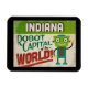 A charming Indiana vintage travel refrigerator magnet featuring a funny and friendly robot, along with fun retro style text that says, "See you in Indiana"