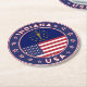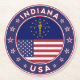 Badge of Indiana with flag of Indiana and flag of USA colors, rounded shape.