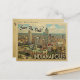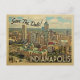 Vintage Indianapolis Save The Date postcards featuring a city skyline view. This cool mid-century retro design is the perfect way to gather guests to your Indianapolis Indiana destination wedding.