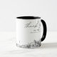 Modern Indianapolis skyline coffee mug favor gift with "thank you" script. The design showcases a stunning sketch with the ability to customize your names and exact location. Enter the Zazzle design tool for additional customizations.
