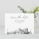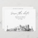 Modern Indianapolis black and white save the date invitation. The front showcases a stunning sketch, setting the perfect tone for your wedding day. Add your own photo to the back and customize the text to make it your own. Enter the Zazzle design tool for additional design customizations.