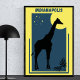 A Geometric Retro Vintage Style Zoo Poster for the Indianapolis in Indiana, the United States. It is home to the Indianapolis Zoo. The design represents a giraffe at night with moon, stars and palm leaves. Perfect gift idea or home decor for zoologist and for those who love animals, wildlife, zoos, especially the great American Indianapolis Zoo.