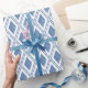 Our medium blue and white patterned wrapping paper has the hand-blocked look of traditional indigo dyed textiles, in a modern geometric vertical diamond pattern. Finish the look with solid white satin or grosgrain ribbon for a gorgeous gift.