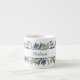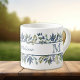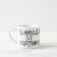 You'll love this pretty personalized espresso cup that features a pattern of indigo blue and green leaves and fern images making a border for your monogram at the center. The monogram and images are placed on a white background. Your monogram is repeated on two sides of the cup, with your first name or other text at the center between the monograms.
