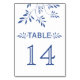 Indigo blue leaves wedding table number card