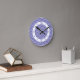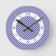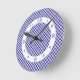 Shades of indigo blue in tiny squares are the background for this analog wall clock. A white circle is the base for the hour numbers in a matching color.