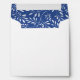 Indigo blue pattern of leaves and monogram wedding and engagement white envelope for square or circular round invites. It features a pretty pattern of white leaves on indigo blue background on the inside and your initials on the white outside.