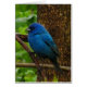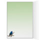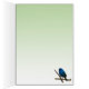 This note card features the spectacular male Indigo Bunting perched on a branch amidst lush green leaves. This tiny bird is not often seen. He is shy and tends to avoid humans. His habitat is farmland, brush areas, and open woodlands. He has incredibly brilliant iridescent blue feathers and a very sweet song. The female is cute but a dull brown color. Inside are two small buntings on a pale green gradient.