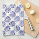 Indigo dark blue striped circle pattern on white kitchen towel
