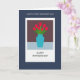 This card features a minimalist still life framed like an instant photo, set on a deep indigo background. Inside the white frame, seven scarlet, tulip-like flowers rise from slender green stems gathered in a sturdy turquoise vase, giving the arrangement a cared-for, affectionate feel ❤️. Behind the bouquet sits a muted auburn backdrop that fades down into a cool, pale blue tabletop, adding gentle depth without extra clutter. Centered above the framed image, white sans-serif text reads “HAPPY FIRST MOTHER’S DAY,” standing out clearly against the dark background. Centered below the frame, matching white sans-serif text reads “HAPPY MOTHERS DAY,” balancing the layout in a calm, steady way. The strong contrast between the dark outer background and the bright flowers creates a cozy, close-to-the-heart look, like a small keepsake shared between loved ones 🌼. The white border is crisp and even on all sides, with the bouquet centered neatly within it.