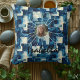 Indigo Geometric Bloom – Elegant Abstract Portrait Throw Pillow