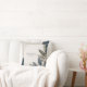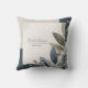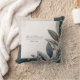 Introduce a piece of sophisticated, modern botanical art to your event with this stunning throw pillow. The visual design is anchored by an elegant cluster of stylized olive or eucalyptus leaves and berries in deep, muted tones of indigo, slate, and sage green. The central feature is a lightly speckled white square with a thin gold border, set against a dramatic backdrop of geometric color blocks in dark indigo and light taupe. Note the intricate details, such as the terrazzo texture in the top right block and the frosted, dusty texture applied to the leaves, which gives the design depth and a luxurious feel. This unique piece is perfect for creating a chic, modern winter wedding lounge, providing a stylish anchor for a formal anniversary dinner, or setting an elevated tone for a contemporary bridal shower. It also serves beautifully as a unique, artistic accent for a designer living room or a high-end office space. This item's versatile design makes it an excellent choice for businesses, other celebratory events, or interior decorators looking for romantic floral décor.