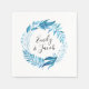 Our elegant personalized paper napkins feature a wreath watercolor leaves in shades of indigo and teal blue. Personalize the botanical napkins by adding your names for a design that will impress your guests! Designed to coordinate with our Indigo Leaves wedding collection.