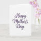 This card features the words “Happy Mother’s Day” centered on a wide white background, arranged across three lines with generous space around them. The lettering is flowing and graceful, with long curves and soft flourishes that feel like a gentle embrace ❤️. The text is a rich deep purple that drifts toward indigo in places, creating a tender, affectionate look rather than a flat, uniform tone. Each letter shows slight variations in color density, like brushed pigment that deepens and lightens as it moves, adding a quiet, intimate charm. The phrase sits prominently in the middle of the front, with no other graphics competing for attention, so the message feels focused and calm. Bright, even lighting keeps the words crisp and easy to read, while the white space gives the design a serene, airy presence 🌼. The final line of text sits slightly lower than the others, with the same purple-to-indigo shading visible along the downstrokes and curves.