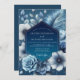 Immerse your special day in an atmosphere of elegant mystique with this stunning floral design. A sophisticated monochromatic palette of deep indigo, slate, and dusty blue creates a moody and romantic ambiance. The composition features lush arrangements of watercolor roses, delicate anemones, and soft succulents, all rendered in beautiful shades of blue.