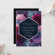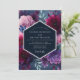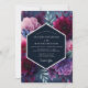 This elegant design features a dramatic and lush bouquet set against a deep, moody background. A stunning palette of rich magenta, fuchsia, and plum blossoms contrasts beautifully with the dark indigo and navy tones. Soft pink roses and silvery-green leaves add delicate accents, creating a sense of romantic opulence for your special day.