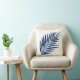 Indigo Watercolor Palm Fronds Throw Pillow