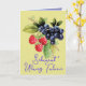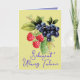 Card with colorful berries on the cover. It says "Selamat Ulang Tahun" in Indonesian language to wish a happy birthday. Kartu ucapan selamat ulang tahun online. Inside of card is in English. It wishes happy birthday and also says "May your life blossom and be filled with all good things!"