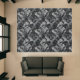 This indoor area rug is shown in a lovely blend of black and gray colors in a tropical palms print.