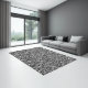 This indoor area rug is shown in a lovely blend of black and white colors in a animal zebra print.