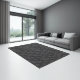This indoor area rug is shown in a lovely blend of black and gray colors in a floral print.