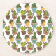 Indoor Cactus & Succulents In Pots Pattern Round Paper Coaster