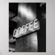 This striking poster print features a glowing neon coffee sign captured in dramatic black and white. The industrial wall setting and minimalist style create a bold urban atmosphere, making it an ideal piece for modern kitchens, coffee bars, loft spaces, or cafes. Its clean monochrome design adds a contemporary edge while celebrating the timeless love of coffee. Perfect for anyone who appreciates stylish photography and wants to bring a trendy city vibe into their home or workspace. Printed on high quality paper, this artwork is designed to stand out as a unique decorative statement.
