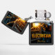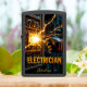 This gritty, industrial design is a perfect emblem of the working electrician. The image provides a high-detail, close-up view of a gloved hand wielding a tool, creating an intense, golden-yellow electrical arc against a complex, metal control panel background. The dark, textured setting, filled with intricate wiring and machinery, emphasizes the harsh, hands-on environment of commercial and industrial work. The bright spark is a powerful visual metaphor for the focused skill and immediate consequence inherent in the trade. The bold, metallic gold text "ELECTRICIAN" firmly grounds the design in professional pride. This lighter is a rugged, compelling accessory that celebrates the dedication, bravery, and technical expertise required to manage powerful industrial electrical systems.