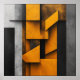 Abstract composition with overlapping geometric panels in metallic orange, black, and concrete gray. Worn industrial textures create depth and visual drama. Modern architectural design ideal for contemporary decor, offices, or urban spaces. Bring visual impact and industrial sophistication to your environment with this unique artistic piece.
